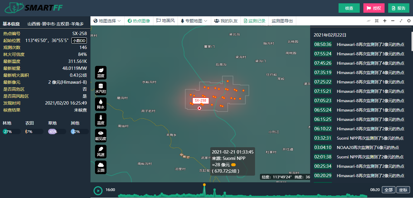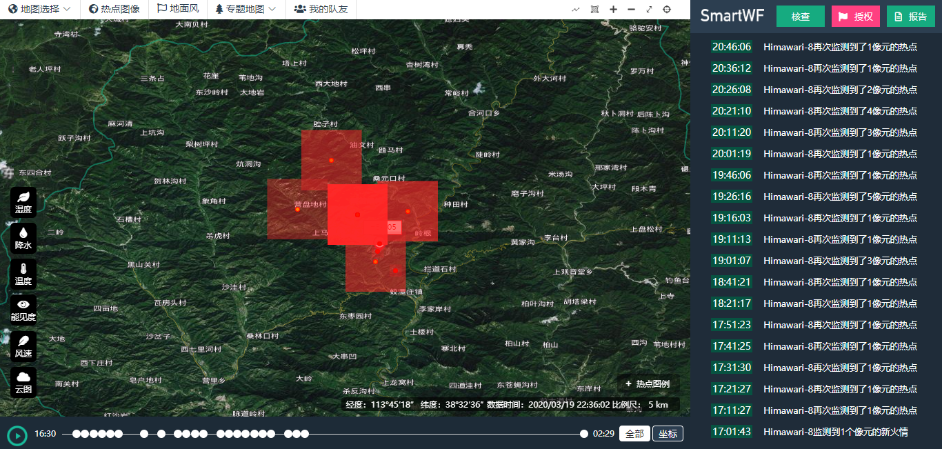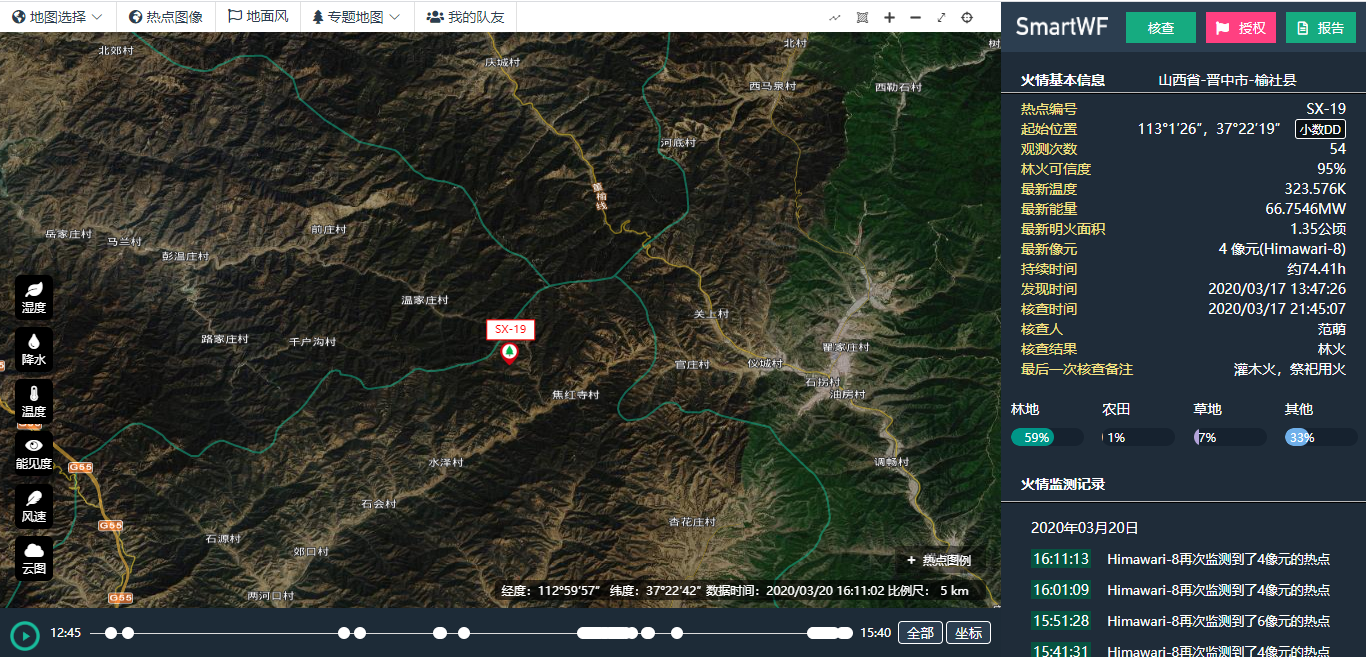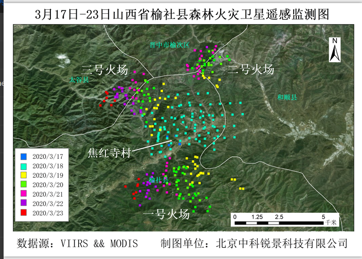 3月17日12时45分,公司林火卫星监测平台监测到山西省晋中市榆社县有热点,初始位置在焦红寺村附近,后续多颗卫星...